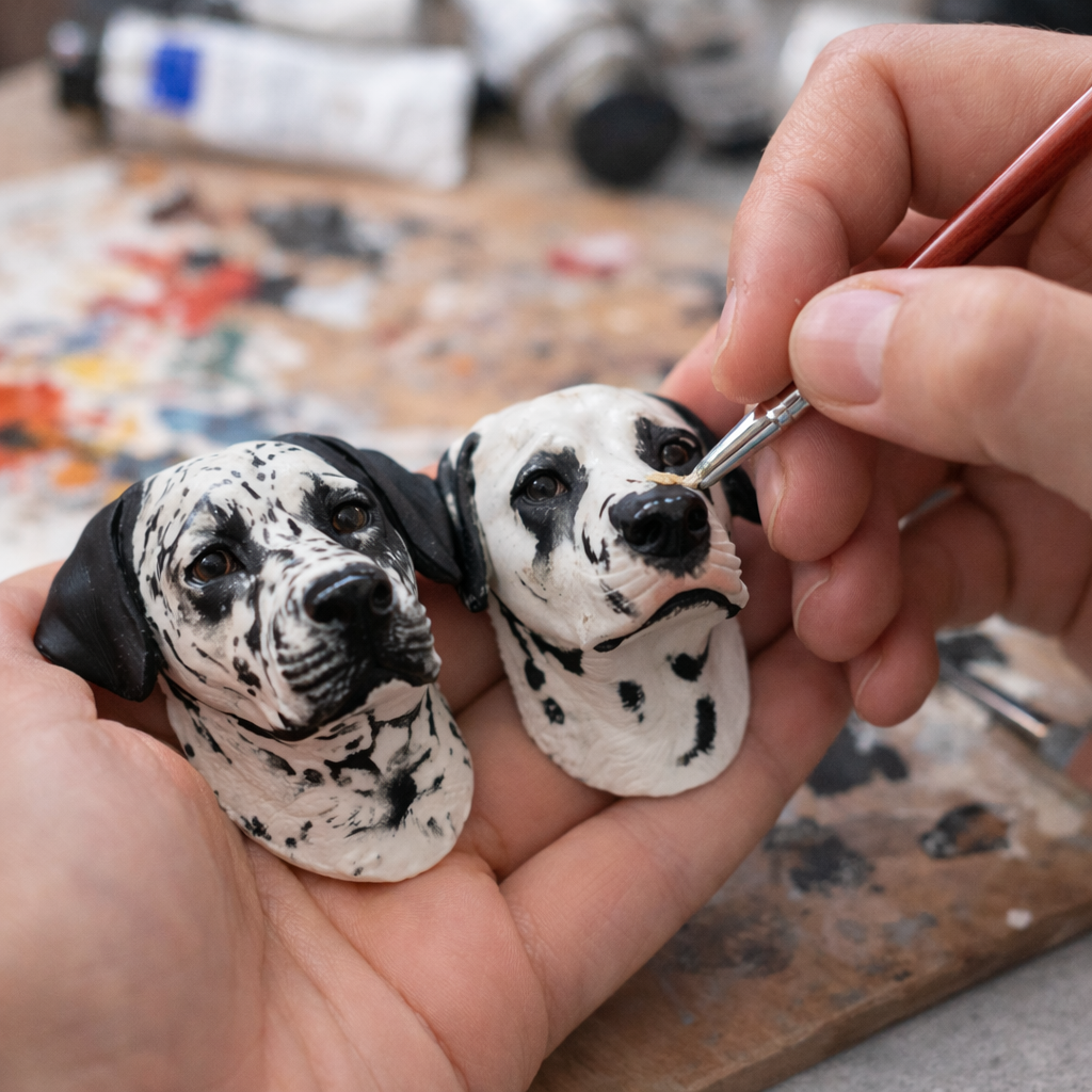 Each piece is individually sculpted and hand-painted with great attention to detail, making every creation truly one of a kind. No molds, no mass production — just genuine craftsmanship and love for pets.
